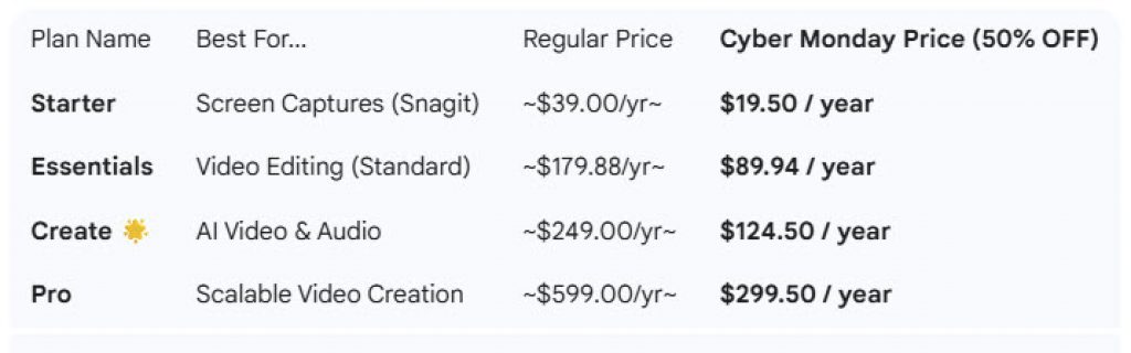 Stop what you are doing! TechSmith has just announced their official 2025 Cyber Monday deal, and it is the most aggressive discount we have ever seen from them.